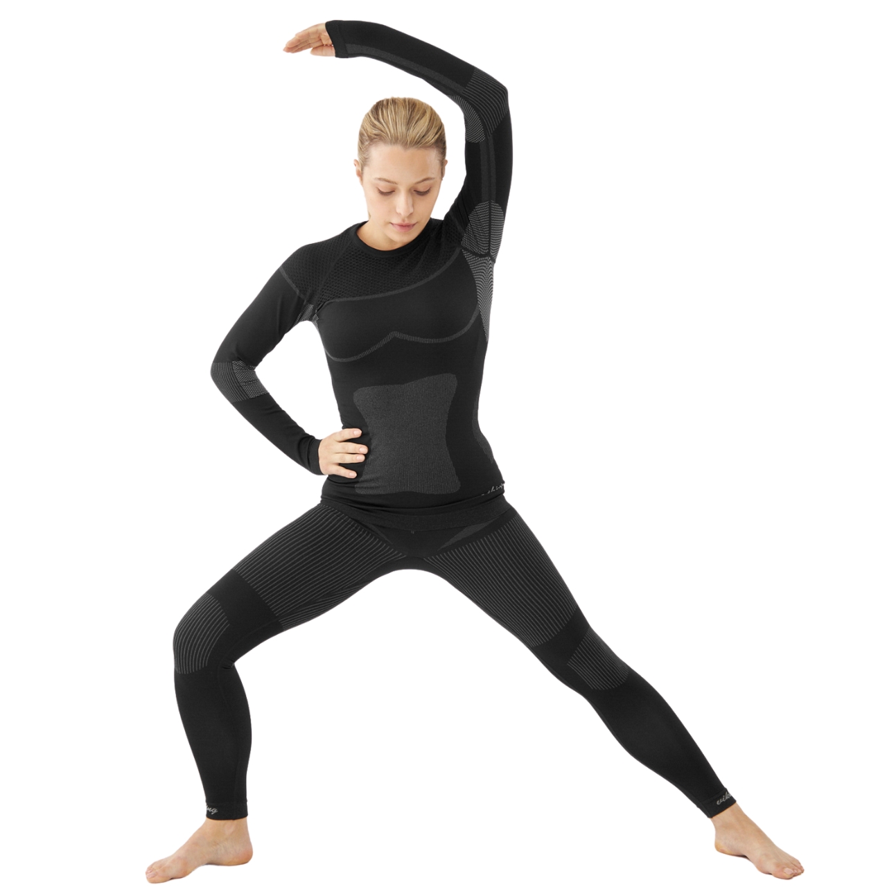 Bielizna termoaktywna damska Viking Ilsa, to bezszwowa, elastyczna konstrukcja, która dopasowuje się do ciała, pozostawiając pełną mobilność bez otarć i ucisku. Kompresyjny krój koszulki z długim rękawem i długich spodni, idealnie przylega do ciała. Szybkoschnący, oddychający materiał. Antybakteryjne i antyalergiczne właściwości. Wzmocnione strefy. Czarny model.