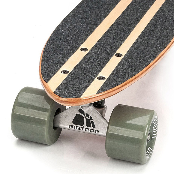 Deskorolka Meteor przeznaczona dzieci, młodzieży i dorosłych sprawdzi się podczas rekreacyjnej jazdy. Nawiązuje do winylowych deskorolek z lat 70 i 80. Kompaktowe wymiary. Deck powstał z 6 warstw klonu zapewniającego trwałość. Antypoślizgowa powierzchnia. Poliuretanowe kółka sprawdzą się podczas miejskiej jazdy po zatłoczonych uliczkach. Aluminiowe trucki odpowiadają za zwiększoną niezawodność układu jezdnego. Ciekawa grafika.