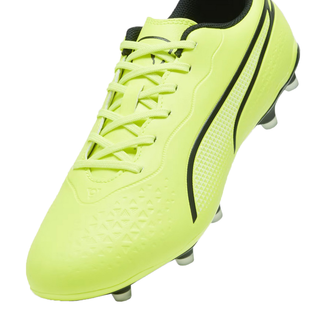 Korki męskie Puma King zapewniają lepszą przyczepność i szybkość reakcji podczas treningów odbywających się na naturalnej nawierzchni. Symetrycznie sznurowana cholewka. Materiał wierzchni z miękkiej mikrofibry. Lekka podeszwa ze stożkowymi korkami zapewnia przyczepność. Cholewka zawiera co najmniej 20% materiałów pochodzących z recyklingu.