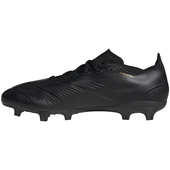 Półamatorskie buty piłkarskie adidas Predator przeznaczone są dla graczy, którzy preferują rozgrywki na twardej, naturalnej murawie. Pochodzą z kolekcji Darskspack. Syntetyczna cholewka Hybridfeel została pokryta wypukłą teksturą. Przyczepne elementy Strikescale na wewnętrznym boku stopy dla naturalnego przejęcia kontroli. Formowana pięta. Sznurowany model z jednoczęściowym językiem z podszewką. Podeszwa z lanymi kołkami.