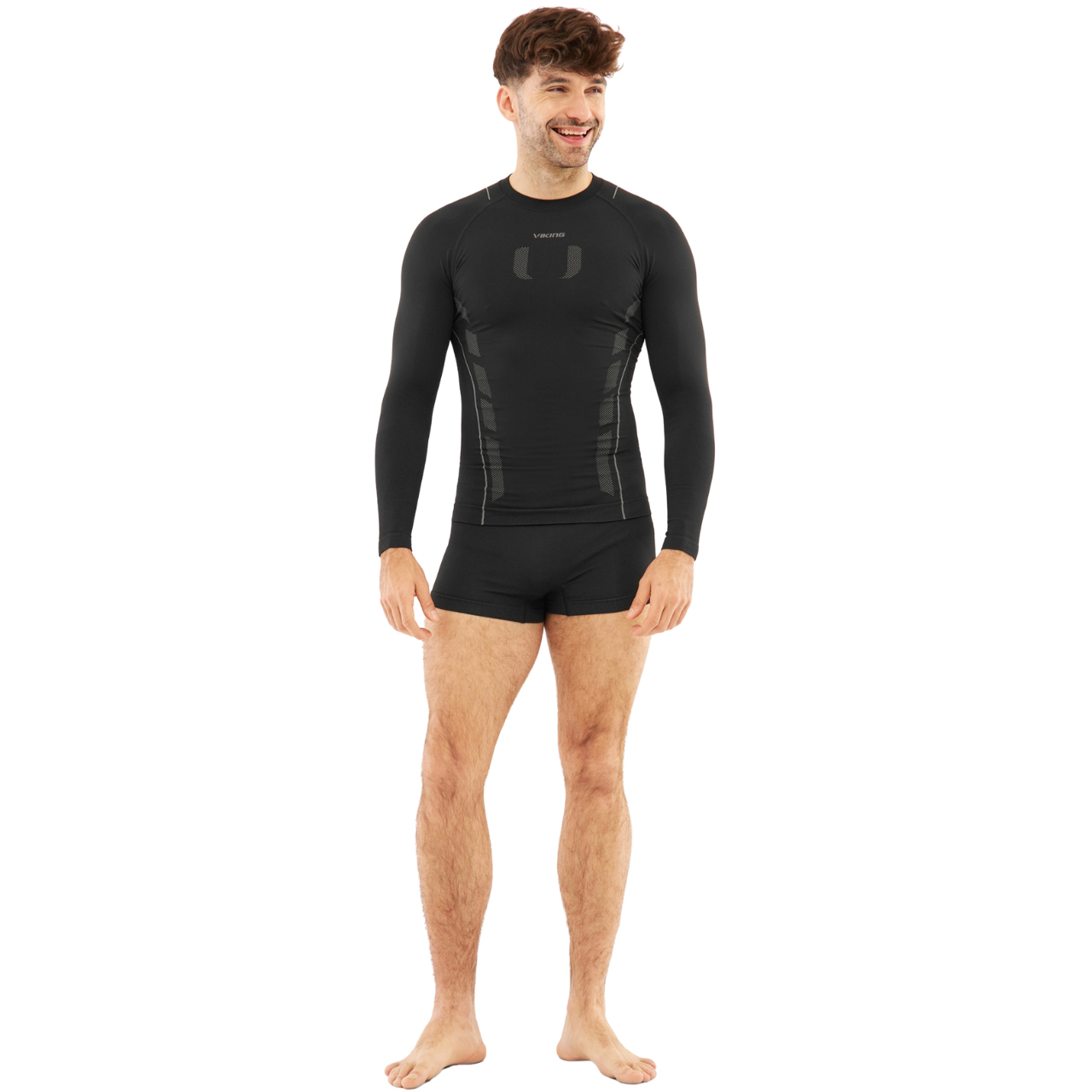 Zestaw bielizny termoaktywnej Viking składa się z koszulki z długim rękawem, długich legginsów oraz bokserek. Bielizna wykonana z wysokogatunkowych włókien bambusowych z dodatkiem poliamidu i elastanu zapewnia bardzo dobra oddychalność, szybkie odprowadzanie wilgoci oraz ochronę przed promieniowaniem UV. Bezszwowa konstrukcja i elastyczny materiał. Zestaw utrzymuje optymalną temperaturę ciała, chroniąc przed przegrzaniem i wychłodzeniem, dlatego sprawdzi się zarówno w zimowych, jak i przejściowych warunkach.