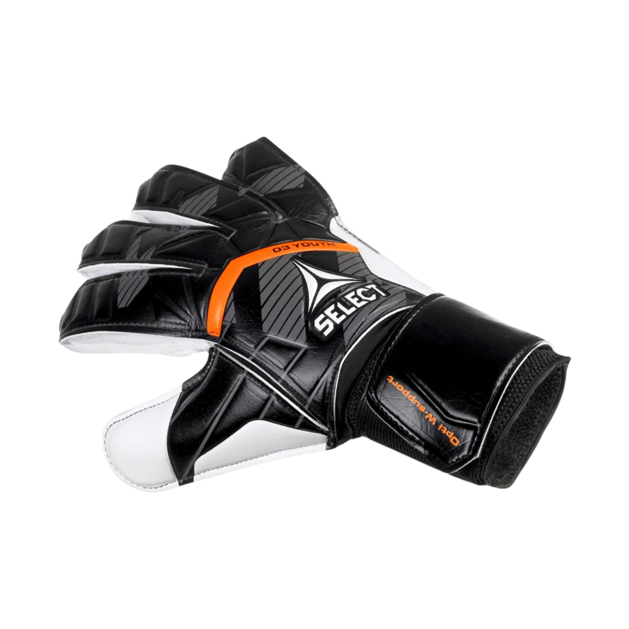 Rękawice bramkarskie dla dzieci Select o przeznaczaniu treningowo-meczowym. Model o kroju typu Flat Cut. Wewnętrzna powierzchnia z warstwy lateksowej Flexion Latex przyczynia się do bardzo dobrego zakresu chwytności niezależnie od warunków pogodowych. System Anatomical Fit wymusza naturalną pozycję chwytu. Siateczka umiejscowiona na wewnętrznej części palców. Zapięcie w formie szerokiego paska na rzep. Wycięcia przy nadgarstku ułatwiają zakładanie rękawicy i zapewniają dużą swobodę ruchu.