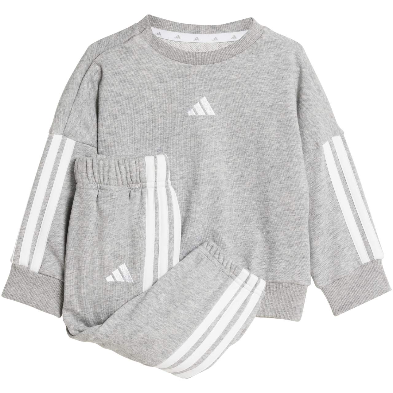 Dres dla dzieci adidas sprawdzi się podczas codziennego użytkowania. Bluza i spodnie. Dres uszyto z bawełny i poliestru. Standardowy krój. W bluzach do rozmiaru 86 cm zamontowano zapięcie na zatrzask na ramieniu. Spodnie posiadają elastyczną talię. Nogawki wykończone elastycznymi ściągaczami.