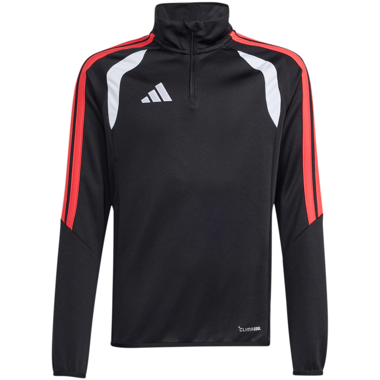 Bluza piłkarska adidas przeznaczona dla dzieci sprawdzi się podczas treningów.. Wykończony patką chroniącą podbródek, krótki zamek. Dopasowany krój. Technologia Climacool jest funkcjonalnym rozwiązaniem, które zapewnia uczucie chłodu i suchości oraz skupienie na grze. Dół oraz mankiety wykończono elastyczną lamówką. Kontrastowe, siateczkowe wstawki. Paski na rękawach. Subtelne logo na piersi.
