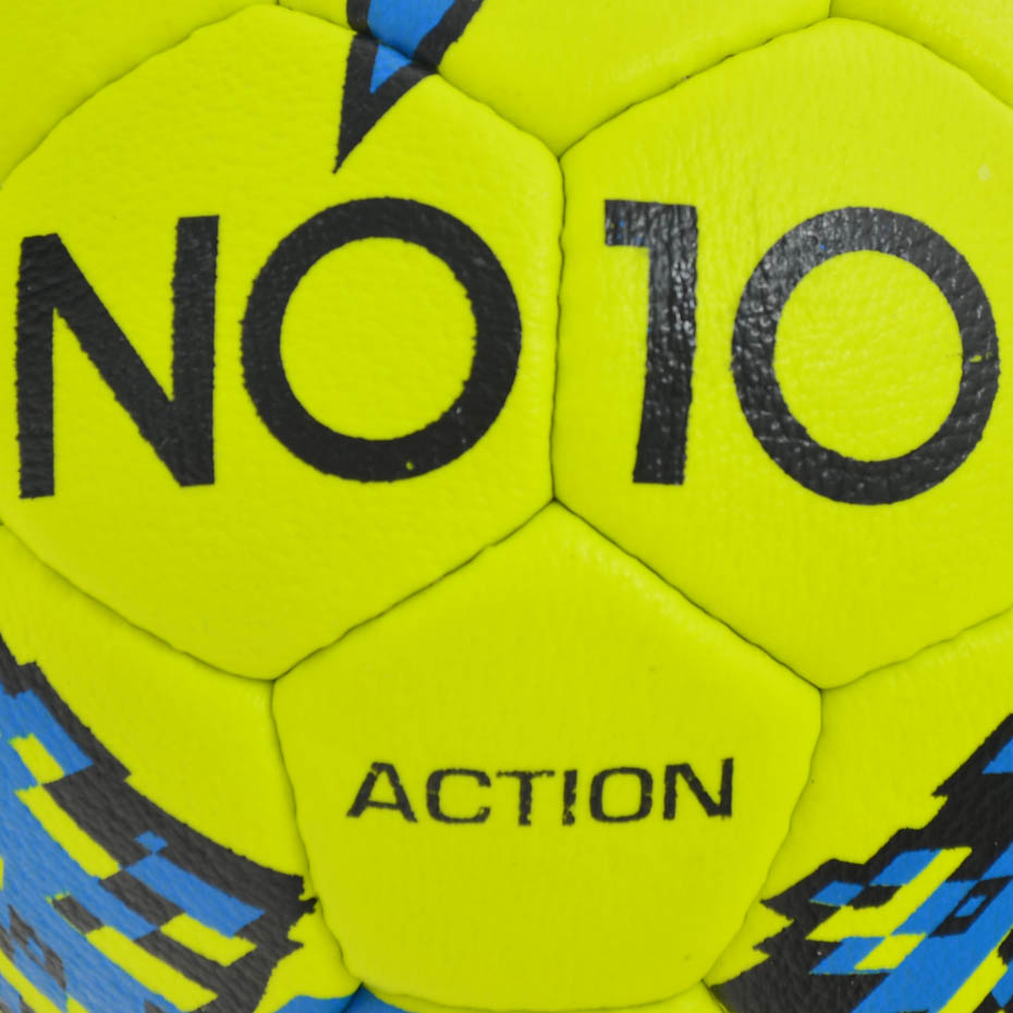 Piłka ręczna NO10 Action wykonana ze skóry syntetycznej. Ręczne szycie. Piłka przeznaczona jest do gry na halach sportowych. Wzmocnione szycie gwarantuje odpowiedni kształt. Wentyl butylowy. Przeznaczona dla najmłodszych.