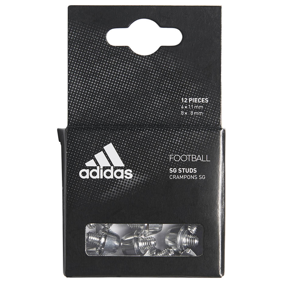 Kołki adidas Studs są kompatybilne z butami: X, Nemeziz i Predator. Zestaw zawiera cztery kołki o długości 11 mm i osiem kołków 8 mm. Przeznaczone do gry na miękkich nawierzchniach. Wykonane zostały z aluminium. W opakowaniu znajduję się 12 sztuk.
