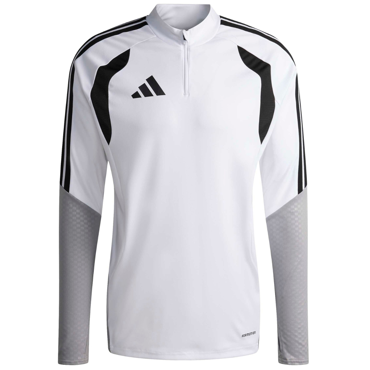 Bluza piłkarska adidas przeznaczona dla mężczyzn sprawdzi się podczas treningów. Stójka. Krótki zamek wykończony patką ochroną. Dopasowany krój. Technologia Formotion zadba o bardzo dobrą mobilność. Siateczkowe wstawki na klatce piersiowej. Paski na ramionach. Subtelne logo na piersi. Wytłoczenia na rękawach i bokach. Szybkoschnące włókna. Rękawy wykończone otworami na kciuki.
