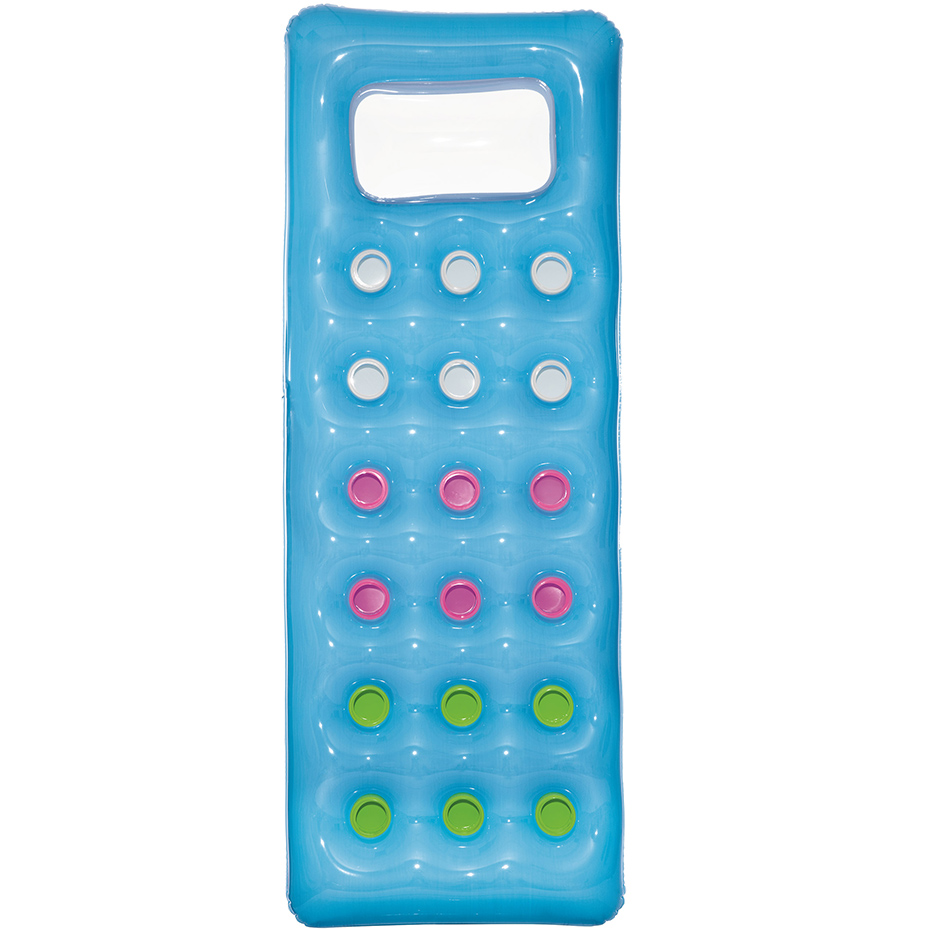 Kolorowy materac do pływania o maksymalnym obciążeniu 90kg. Ten plażowy materac wyprodukowany został przez bardzo popularną firmę Bestway. Wykonany został z mocnego winylu odpornego na działania słonej wody i promieni słonecznych. Prezentowany model dostarczy wiele radości podczas letnich, upalnych dni niezależnie czy będą Państwo nad jeziorem, rzeką, morzem czy w przydomowym basenie zażywać ochładzających kąpieli. Materac posiada wbudowaną poduszkę, która poprawia komfort opalania się. Niezastąpiony dla osób, które chcą maksymalnie wykorzystać swój czas wolny.