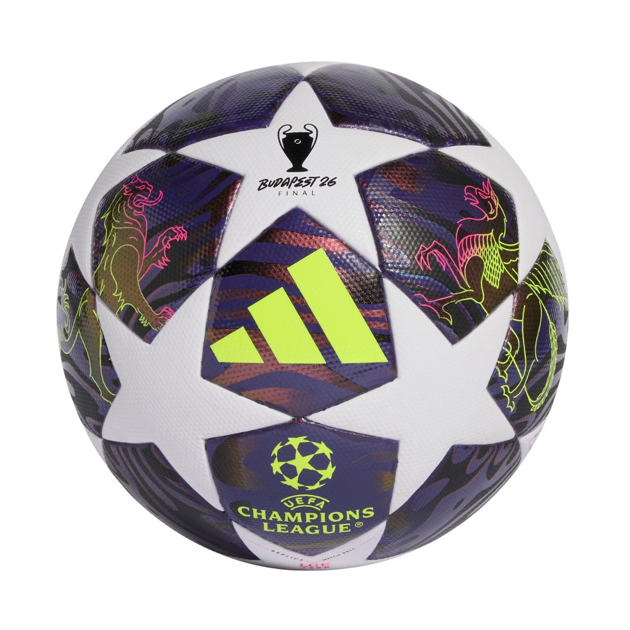 Piłka nożna adidas UCL 25/26 Final League J350 fioletowo-biała JX9098