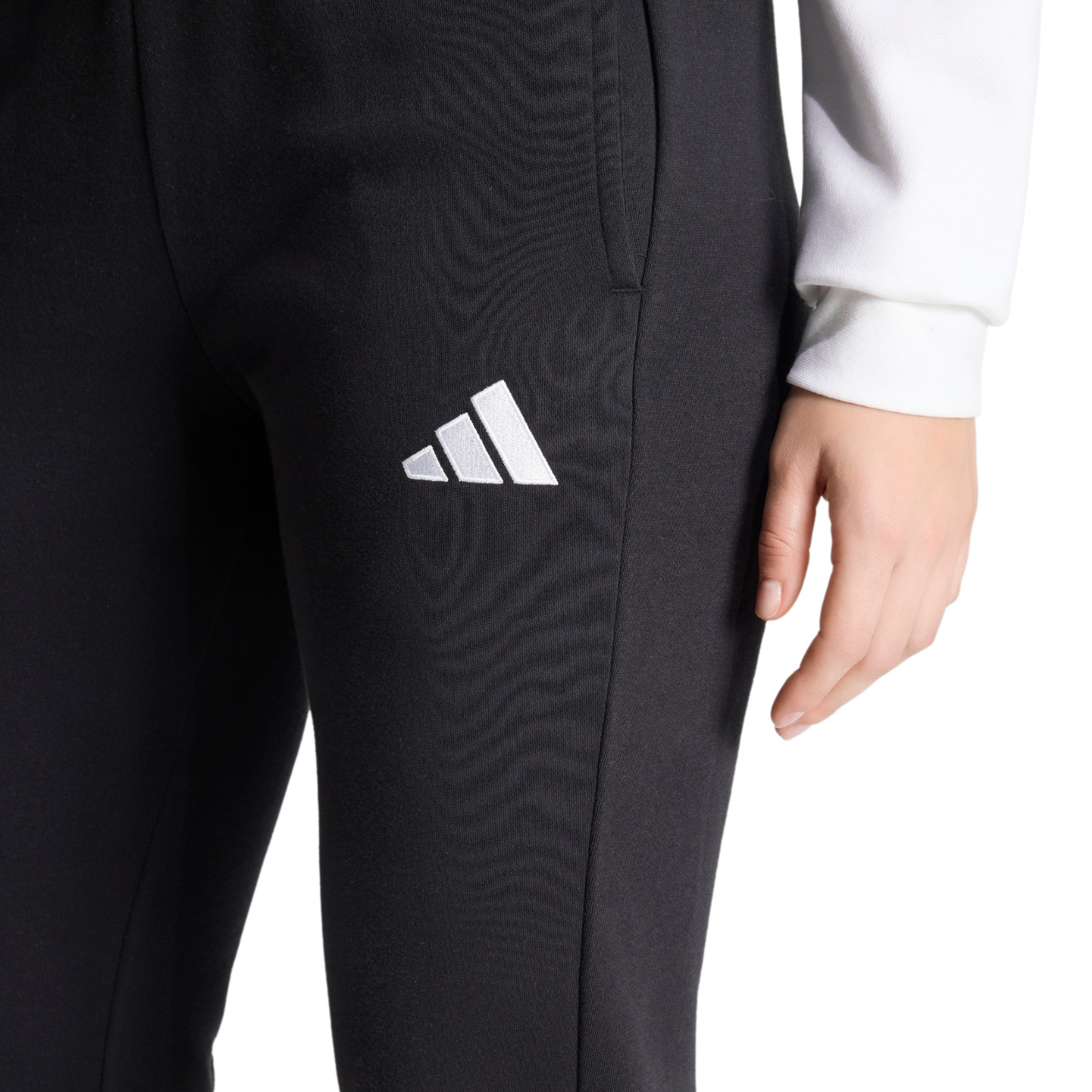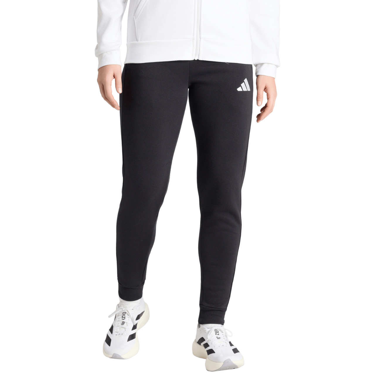 Spodnie dresowe adidas przeznaczone dla kobiet sprawdzą się podczas codziennego użytkowania i treningów. Standardowy krój ze zwężanymi nogawkami zapewnia swobodę. Mankiety ze ściągaczem. Otwarte kieszenie boczne. Elastyczna talia ze sznurkiem do regulacji. Miękki materiał z wewnętrznym ociepleniem.