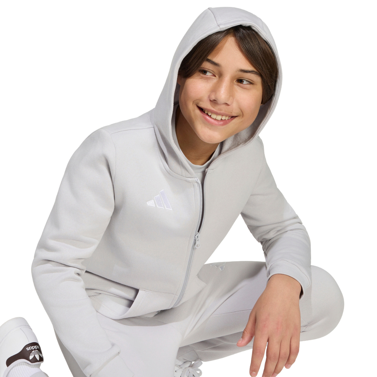 Bluza dla dzieci adidas Entrada 26 Full Zip Hoodie jasnoszara KH1779