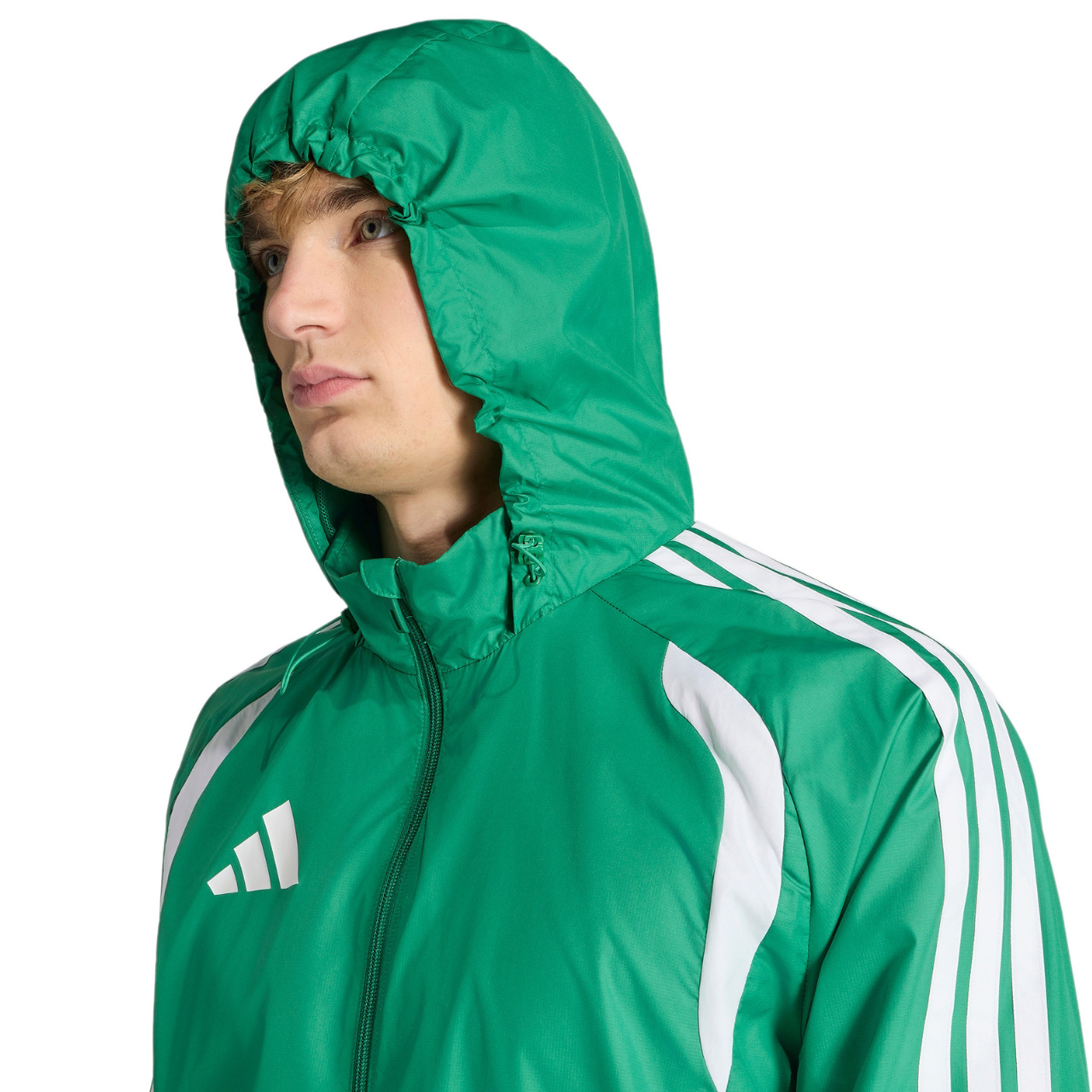 Męska wiatrówka adidas z linii Tiro sprawdzi się podczas treningów. Zamek na całej długości pozwala na szybkie ubieranie. System Clima365. Dwie kieszenie boczne na zamek. Kaptur z regulacją. Elastyczne mankiety. Standardowy krój.