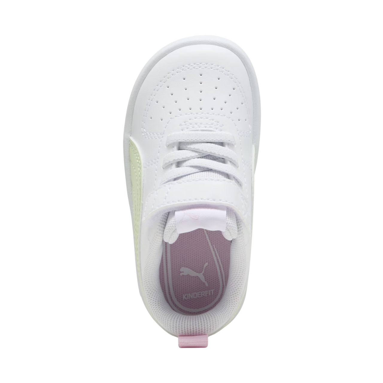 Buty dla dzieci Puma sprawdzą się w czasie codziennego użytkowania. Konstrukcja ze skóry ekologicznej. Perforacje w przedniej części. Miękka, tekstylna wyściółka i wkładka z pianki. Elastyczne gumki przypominające sznurowadła. Dodatkowy pasek na rzep. Gumowa podeszwa.