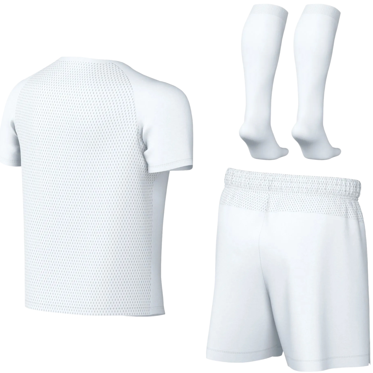Komplet Nike dla dzieci sprawdzi się podczas aktywności. Technologia Dri-FIT odpowiada za uczucie suchości i wygodę. Elastyczny pas w spodenkach jest podszyty siateczką, dzięki czemu zapewnia przewiewność. Siateczka z tyłu koszulki zwiększa wentylację. Standardowy krój daje pełną swobodę ruchów. W zestawie znajduje się koszulka, spodenki oraz getry.
