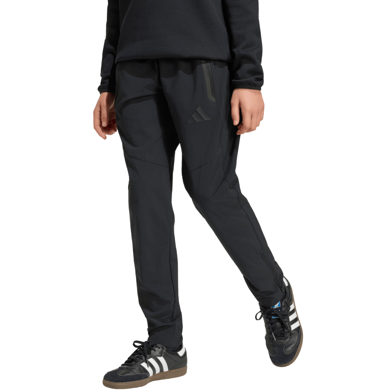 Spodnie męskie adidas będące częścią linii Tiro sprawdzą się podczas odpoczynku pomiędzy sesjami treningowymi. Szybkoschnący materiał o płóciennym splocie. Regularny krój. Zwężane ku dołowi nogawki z ergonomicznymi przeszyciami wykończono suwakami. Elastyczna talia. Zapinane kieszenie boczne. Niewielkie logo.