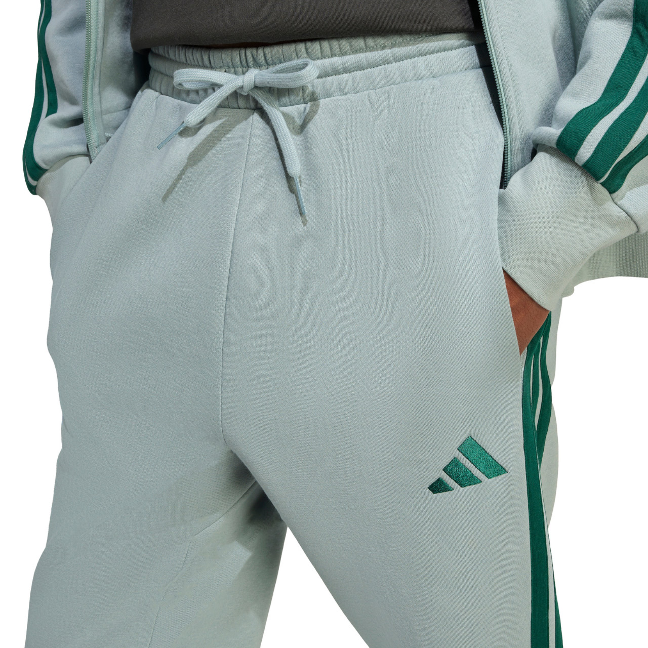 Spodnie męskie adidas Essentials 3-Stripes Fleece miętowe KD4836