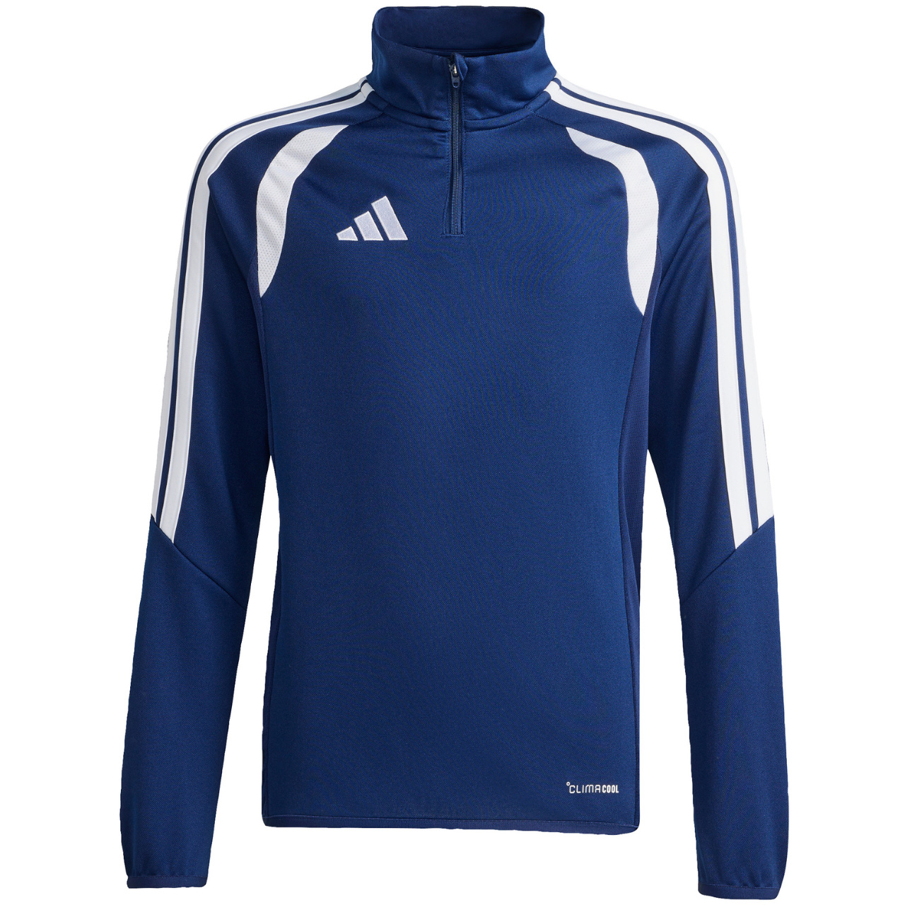 Bluza piłkarska adidas przeznaczona dla dzieci sprawdzi się podczas treningów. Wykończony patką chroniącą podbródek, krótki zamek. Dopasowany krój. Technologia Climacool jest funkcjonalnym rozwiązaniem, które zapewnia uczucie chłodu i suchości oraz skupienie na grze. Dół oraz mankiety wykończono elastyczną lamówką. Kontrastowe, siateczkowe wstawki. Paski na rękawach. Subtelne logo na piersi.