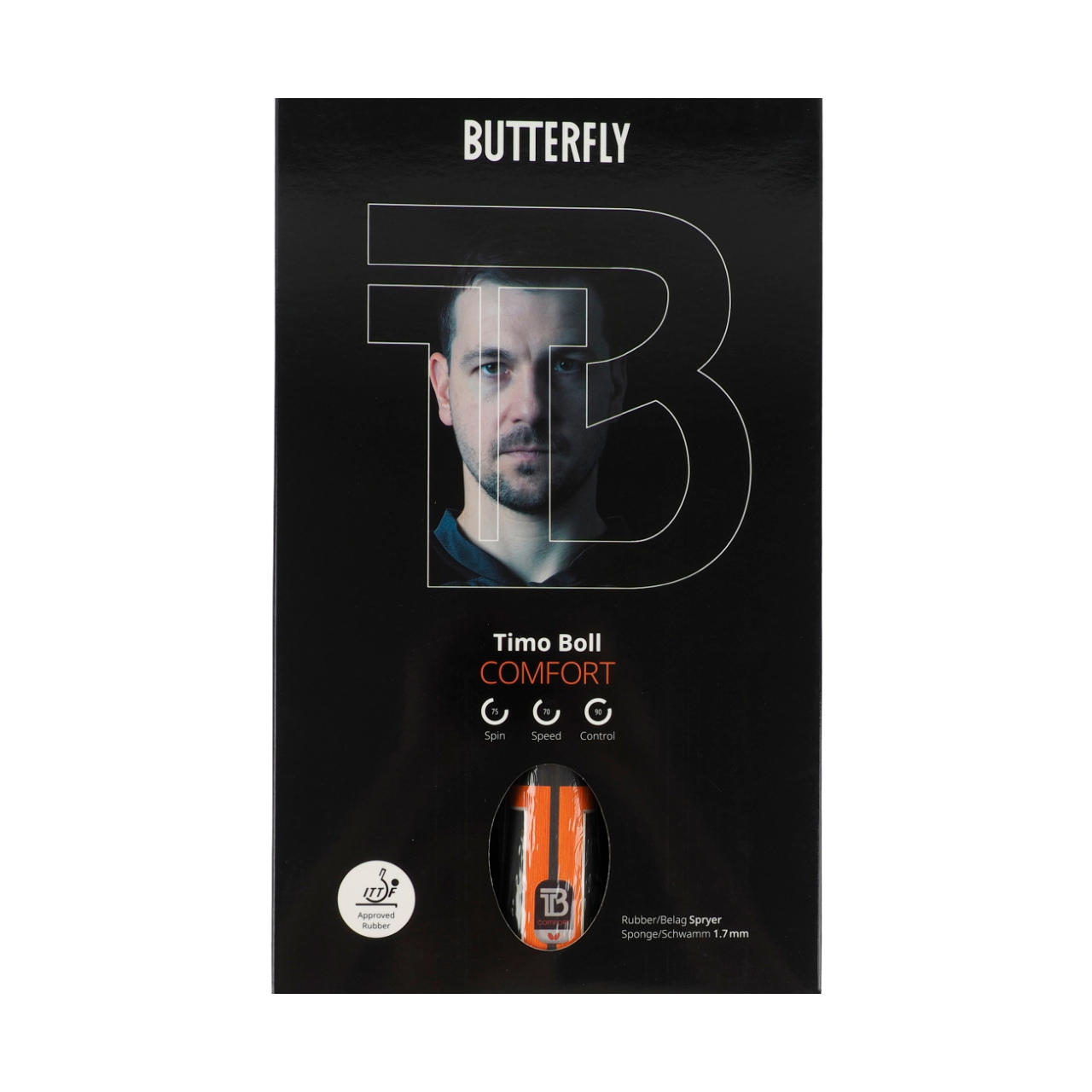 Rakietka do tenisa stołowego Butterfly Timo Boll Comfort. Przyczepna, średnio-szybka okładzina dla doskonałej kontroli i właściwości ofensywnych. Ergonomiczny, wklęsły uchwyt. Uniwersalna rakietka, która sprawdzi się zarówno dla początkujących, jak i zaawansowanych graczy.
