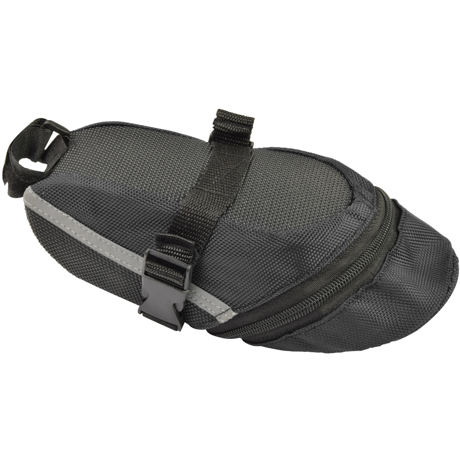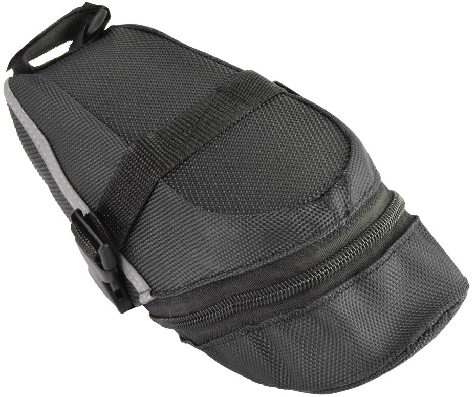 Wodoodporna mała torba rowerowa do zamocowania pod siodełko rowerowe. Montowana poprzez rzep i klamrę. Wyposażona w elementy odblaskowe. Kolor wysyłany losowo!