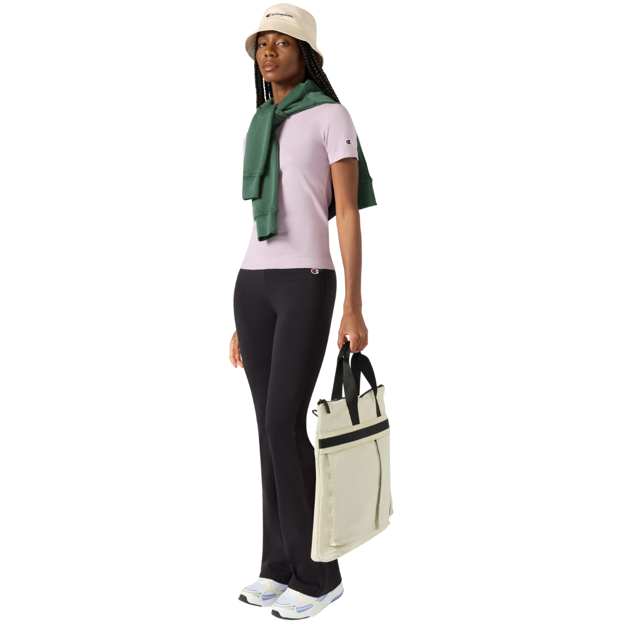 Legginsy damskie Champion sprawdzą się na co dzień. Dominująca, bawełniana tkanina. Dodatek elastycznych włókien. Dopasowany krój z rozszerzanymi nogawkami. Wysoki stan. Elastyczna talia. Niewielkie logo.
