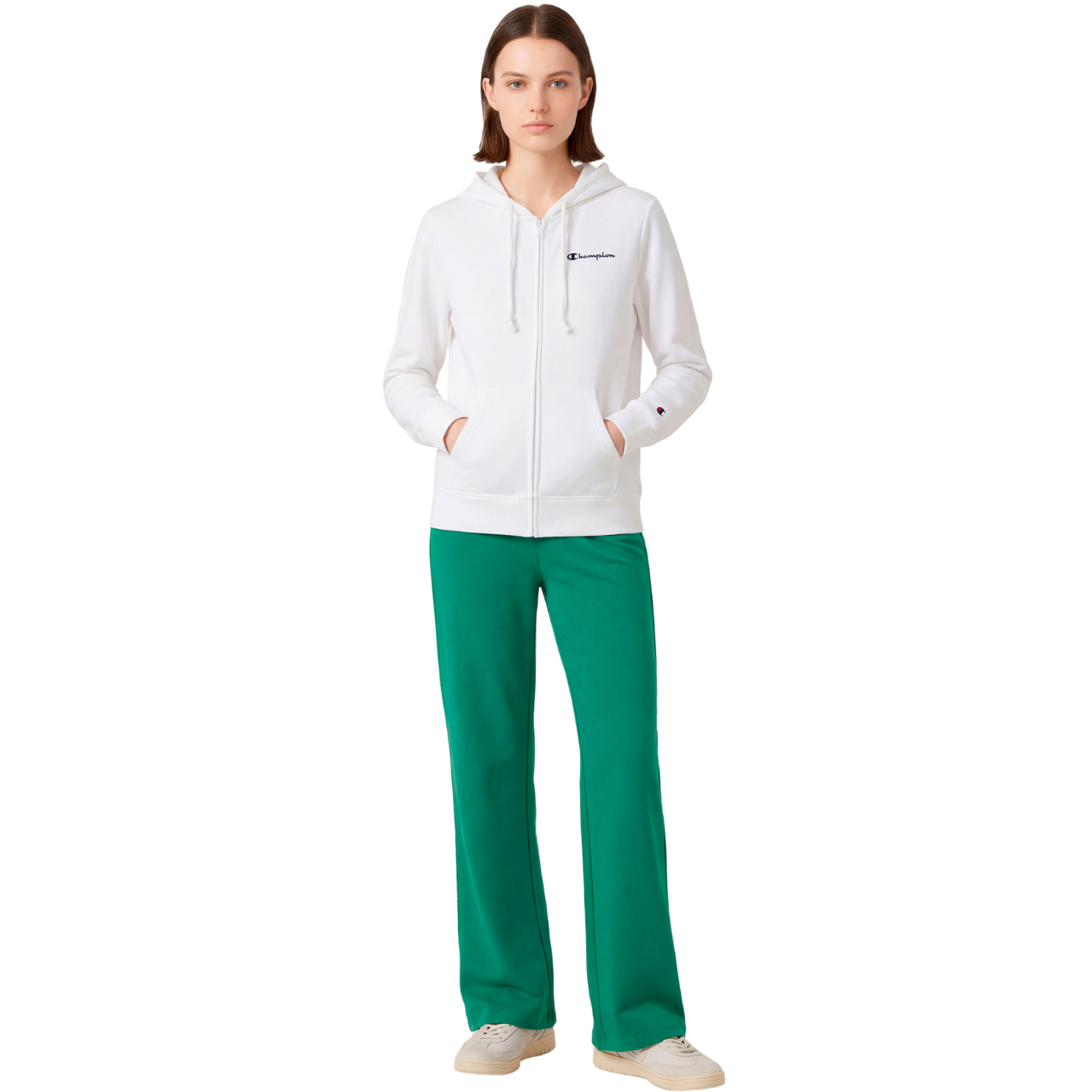 Bluza damska Champion Full Zip Hoodie Sweatshirt biała 118406 WW001