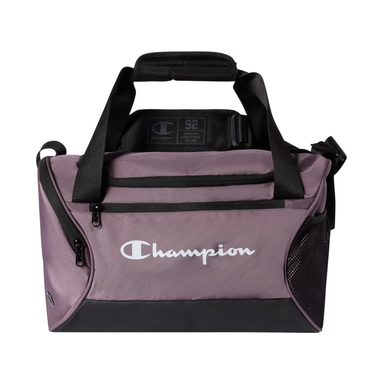 Torba Champion to kompaktowy model w sam raz na weekendowy wyjazd lub wypad na siłownię. Zapinana komora główna. Zapinana kieszeń z boku. Otwarta, siateczkowa kieszeń z boku. Długi pleciony pas z regulacją i miękką nakładką. Podwójne rączki z ochraniaczem na rzep. Pleciona, solidna tkanina. Wzmocniony spód z ochronną powłoką. Proste logo na froncie.