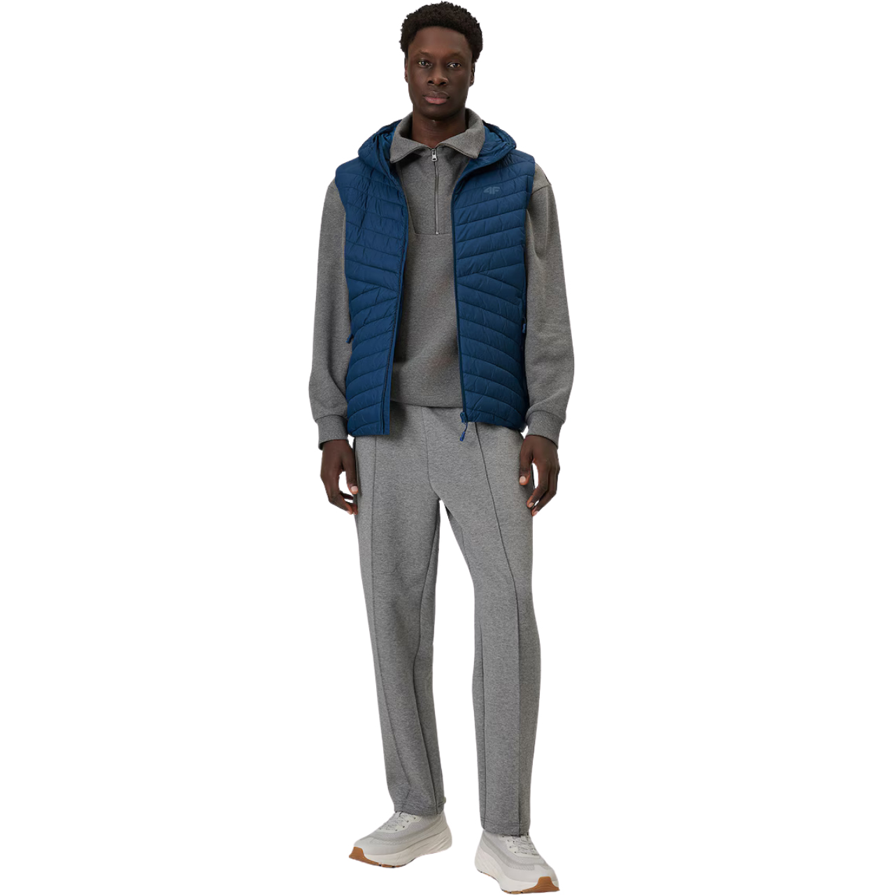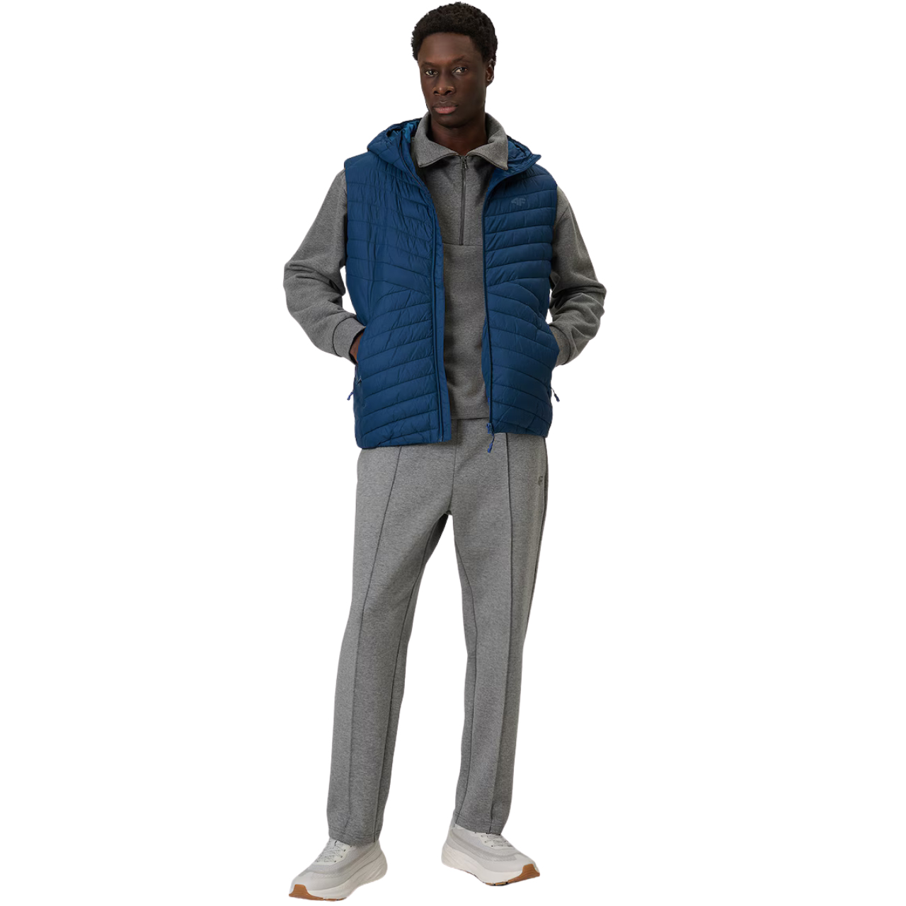 Męski bezrękawnik na przejściowe dni z hydrofobową powłoką i syntetyczną ociepliną, która zapewnia ciepło bez obciążenia. Regularny krój gwarantuje wygodę, a kaptur chroni przed wiatrem. Trzy kieszenie na zamek i zamek na całej długości zwiększają funkcjonalność na co dzień.