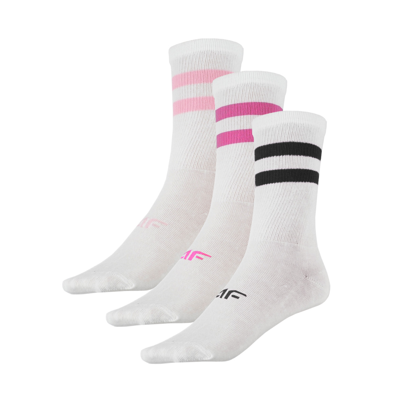 Wygodne skarpety dla dziewczynki 4F z przewagą bawełny zapewniają komfort i dobrą wentylację. Elastyczny ściągacz utrzymuje je na miejscu, a płaski szew przy palcach zwiększa wygodę. Model do połowy łydki, w zestawie 3 pary.
